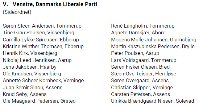 Sådan kommer stemmesedlen til kommunalvalget 2025 i Assens Kommune.til at se ud med kandidaterne opstillet på Venstres liste.